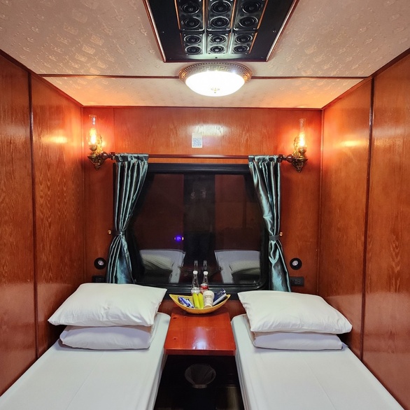 Experience one of Vietnam’s most comfortable overnight journeys aboard the VicSapa Train, connecting Hanoi and Lao Cai. Designed for travelers seeking both comfort and reliability, the train combines modern amenities with elegant, Western-inspired interiors. Each wood-paneled cabin features air conditioning, reading lights, Wi-Fi, power outlets, and an individual sound system for every bed, creating a calm and sophisticated space for the 294-kilometer journey.